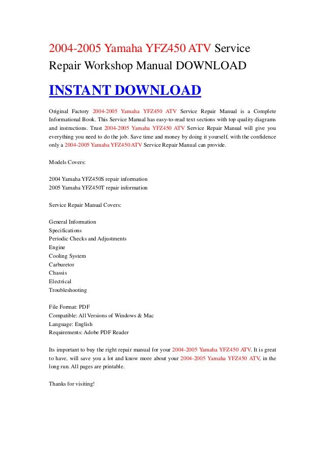 2004 2005 Yamaha Yfz450 Atv Service Repair Workshop Manual Download