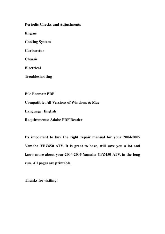 Download Yamaha Yfz450 Repair Manual Download Yamaha Yfz450 Repair Manual 2004 2010