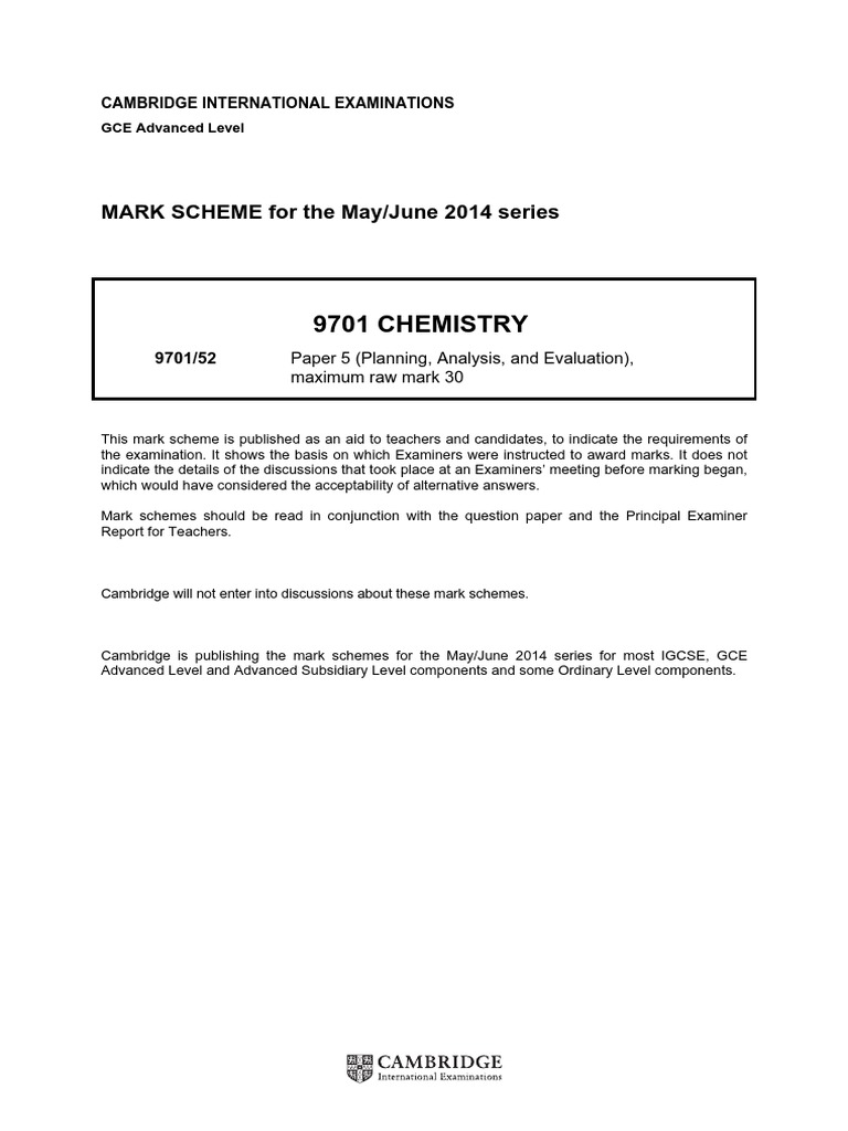 Chemistry June 2014 Paper 1 Answer
