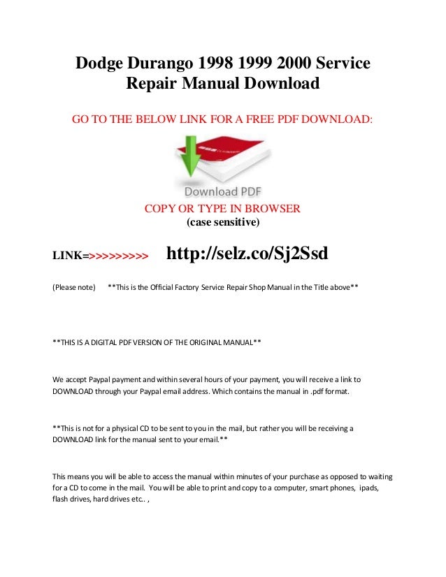 Dodge Durango 1999 Factory Service Repair Manual Download Tradebit