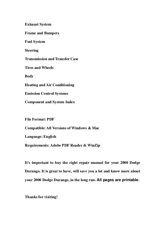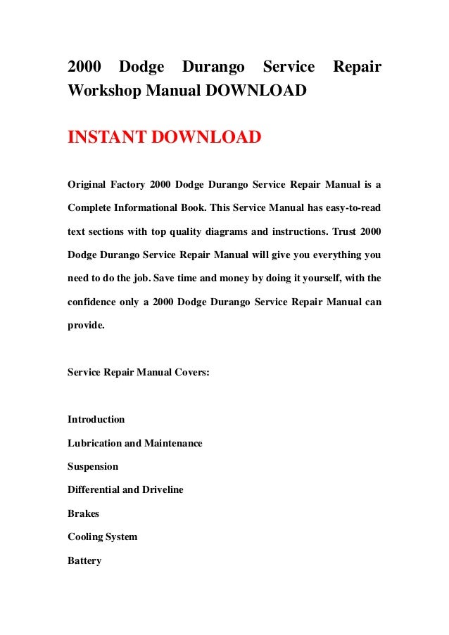 2000 Dodge Durango Service Repair Workshop Manual Download By