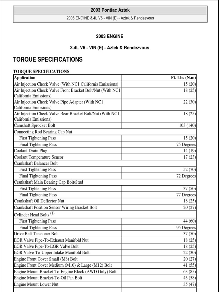 Pontiac Manual De Taller Armado Y Desarmado Motor Pontiac Aztek