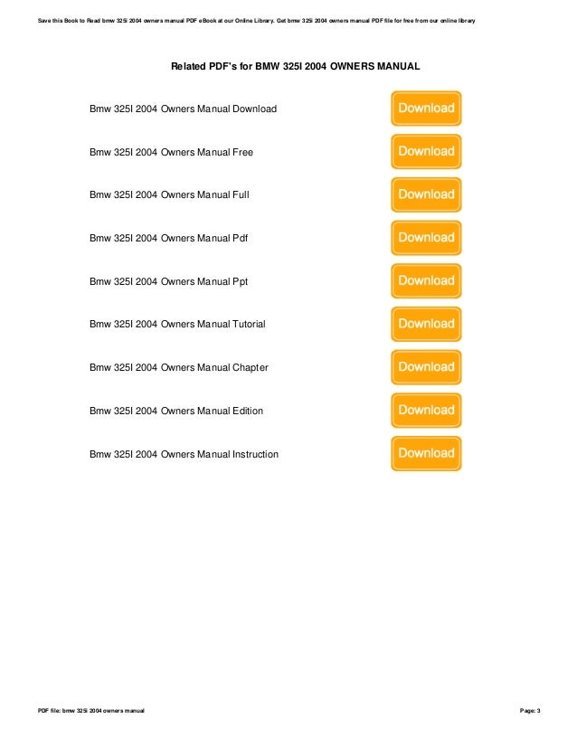 Bmw 325i 2004 Owners Manual