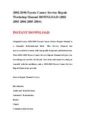 Toyota Solara Pdf Manuals Online Download Links At Toyota Owners
