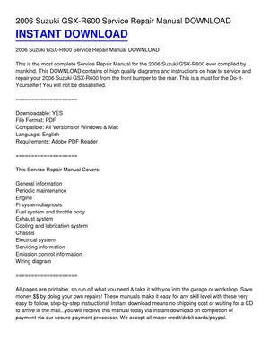 2006 Suzuki Gsx R600 Gsxr600 Service Repair Manual