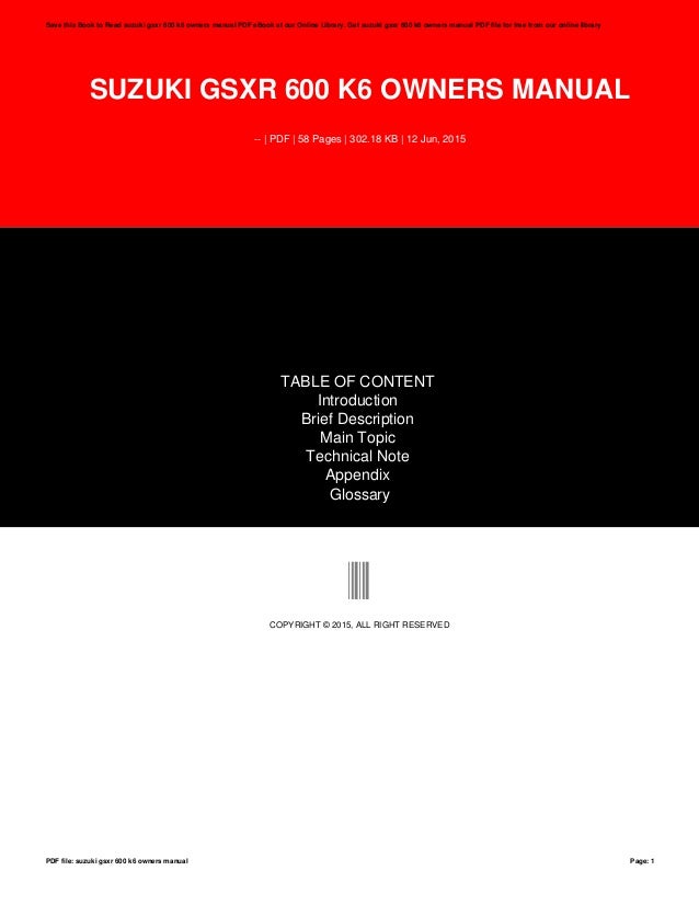 2004 Gsxr 600 Owner S Manual