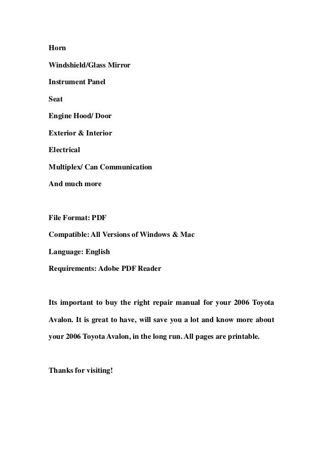 2006 Toyota Avalon Service Repair Workshop Manual Download
