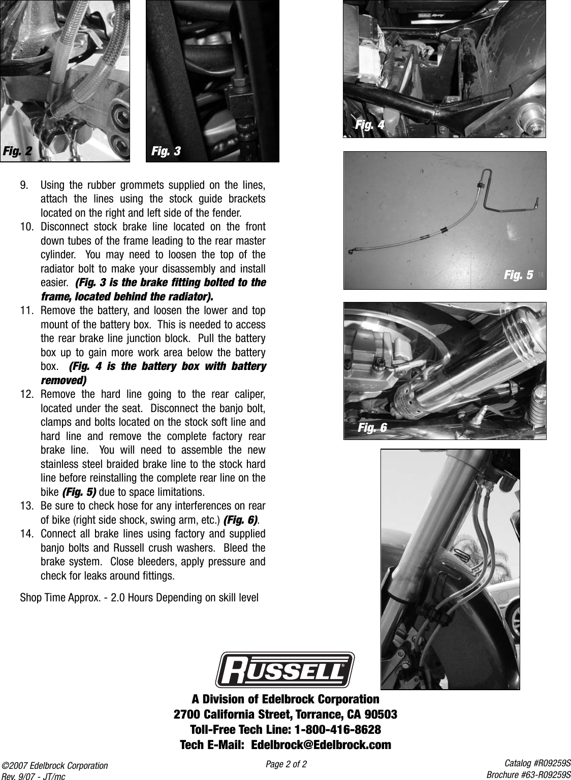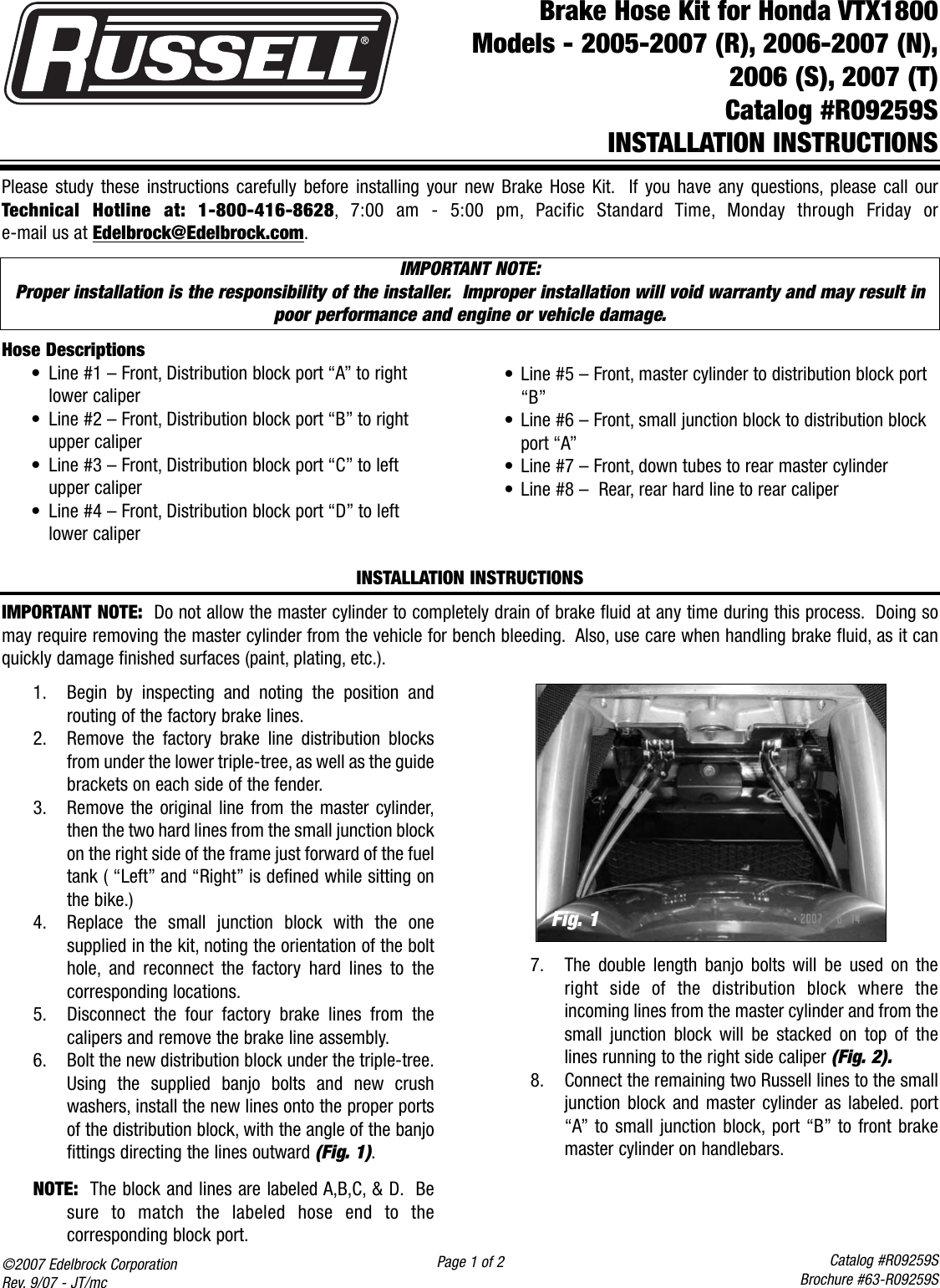 Edelbrock 2005 2007 R Users Manual R09259s Russell Brake Hose For