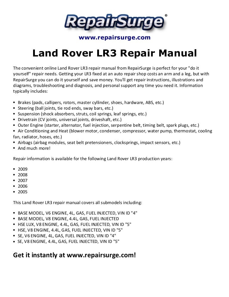 Land Rover Discovery Repair Manual Pdf