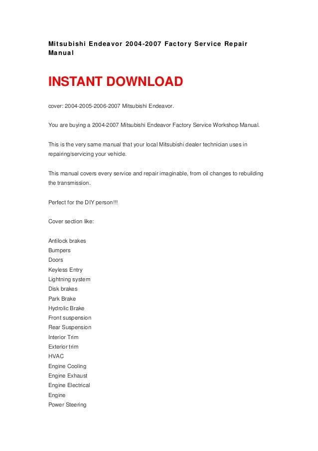 2004 2010 Mitsubishi Endeavor Oem Service And Repair M Oem Auto