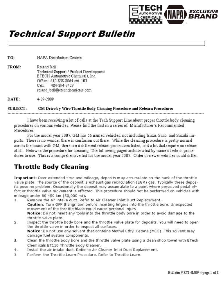 Gm Drive By Wire Cleaning Procedure 1 Throttle General Motors