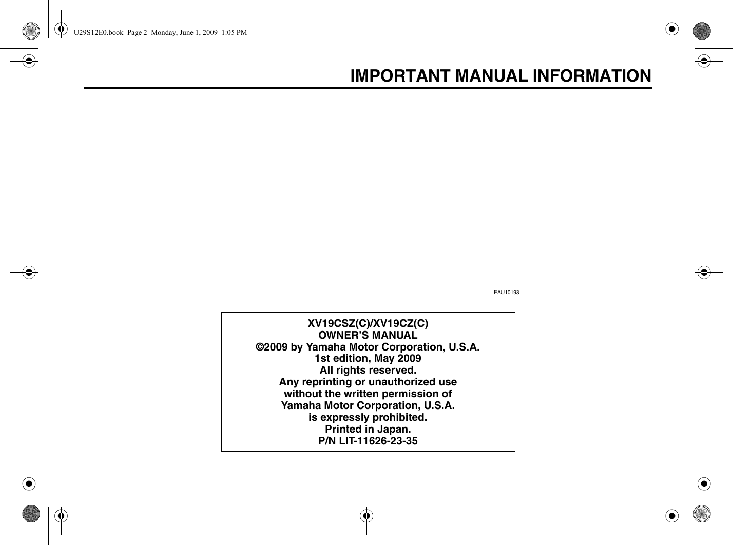 Yamaha 2010 Raider Owners Manual