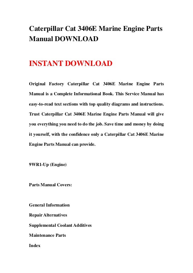 Caterpillar Cat 3406 E Marine Engine Parts Manual Download