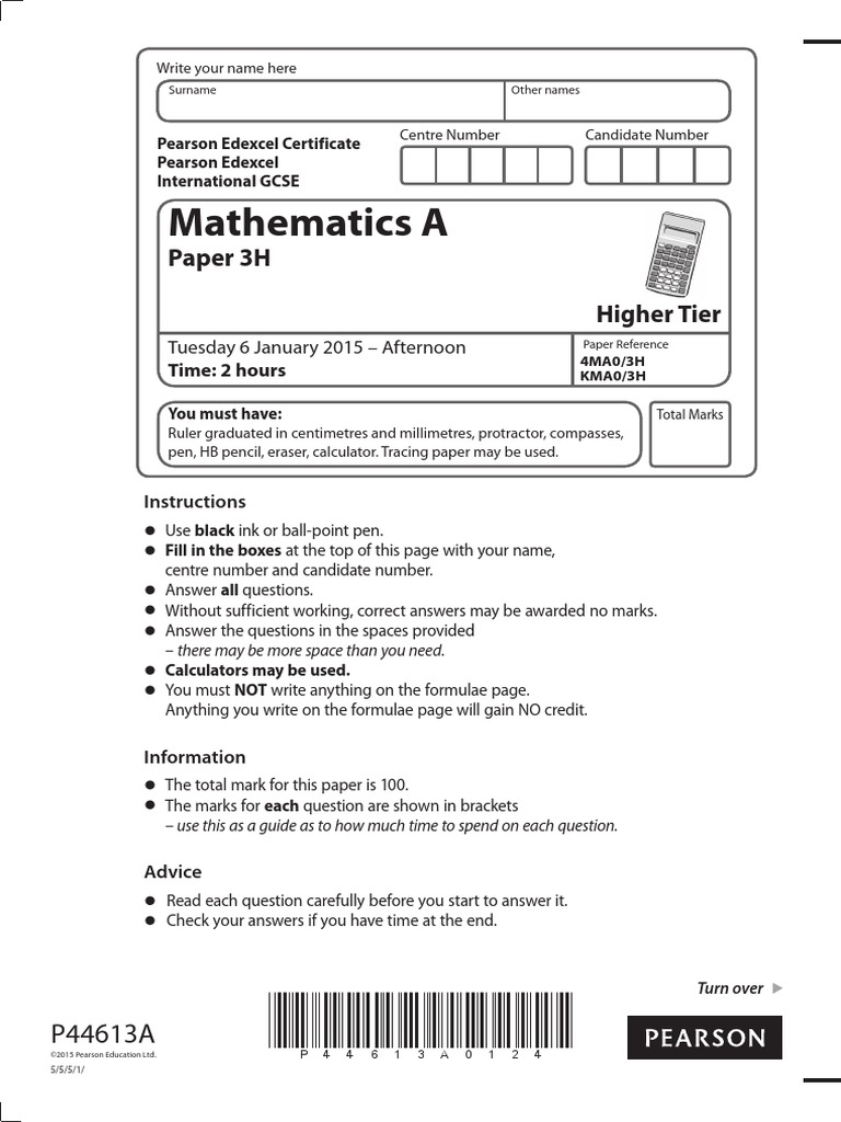 N23069 Igcse Maths Paper 4h Higher Igcse Mathematics 4400