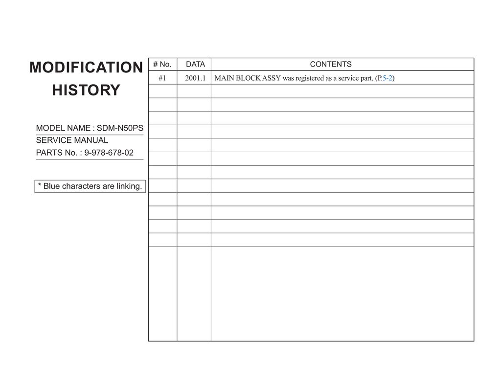 Modification History Model Name Sdm N50ps Service Manual Manualzz