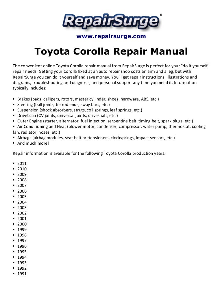 Toyota Corolla Free Workshop And Repair Manuals