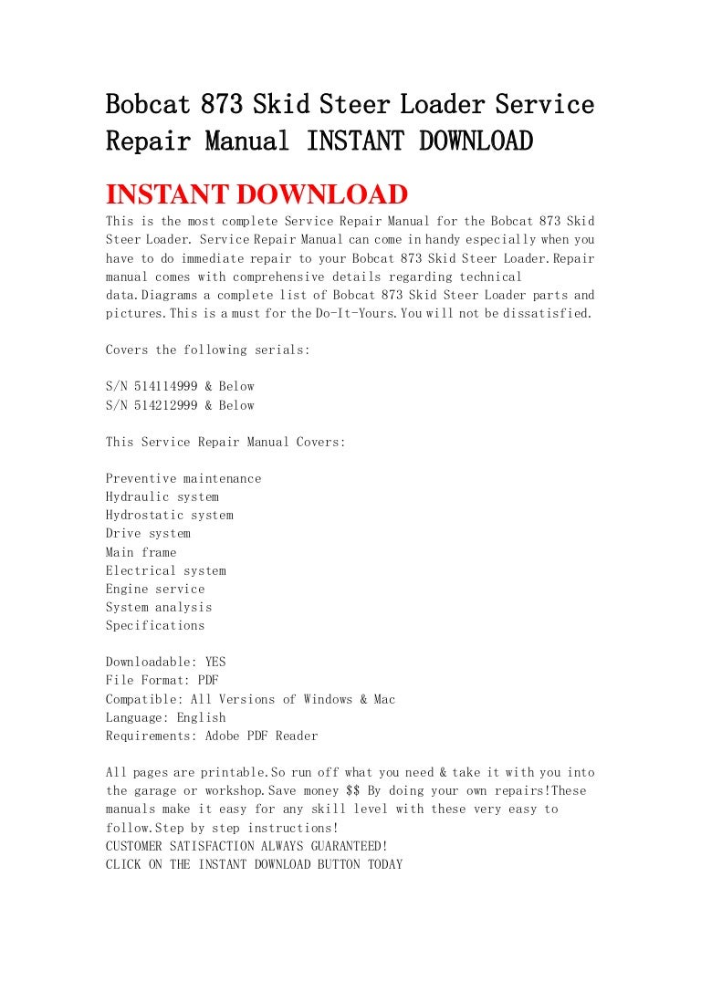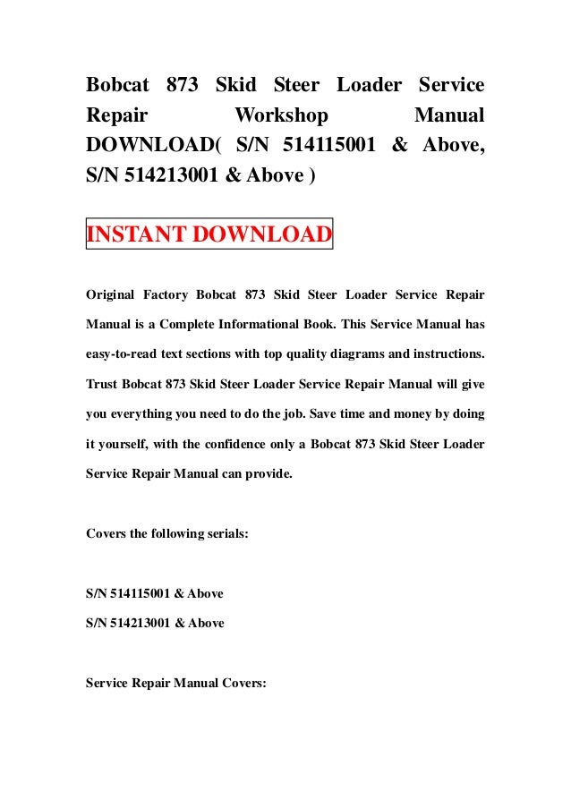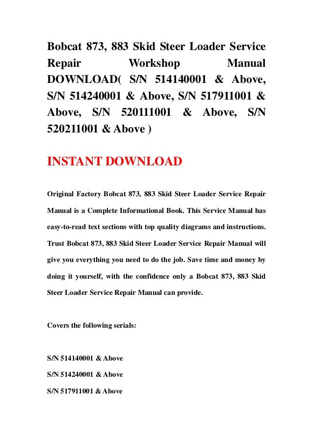 Http Ardiehl De Bobcat 873 Bobcat 20873 20repair 20manual Pdf