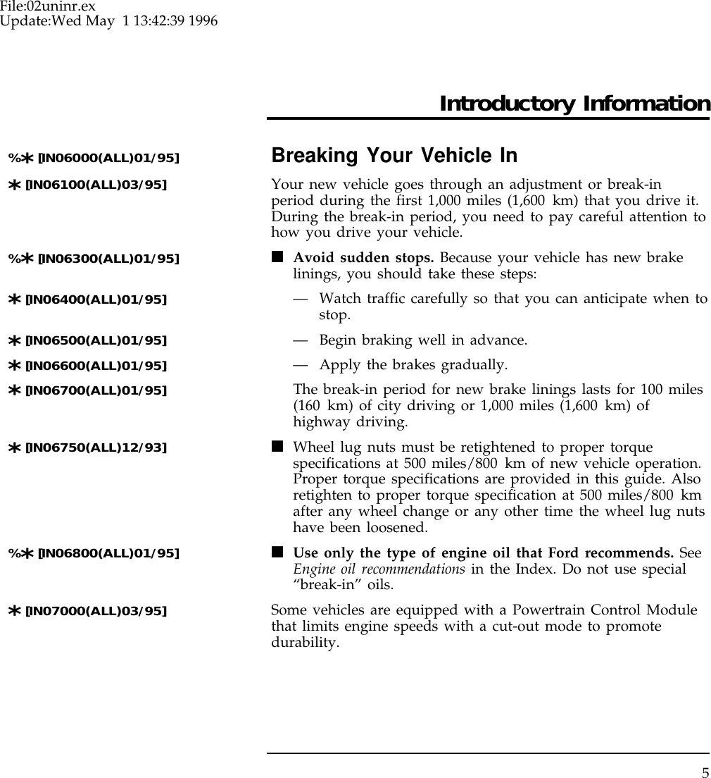 Ford 1996 Ranger Owners Manual