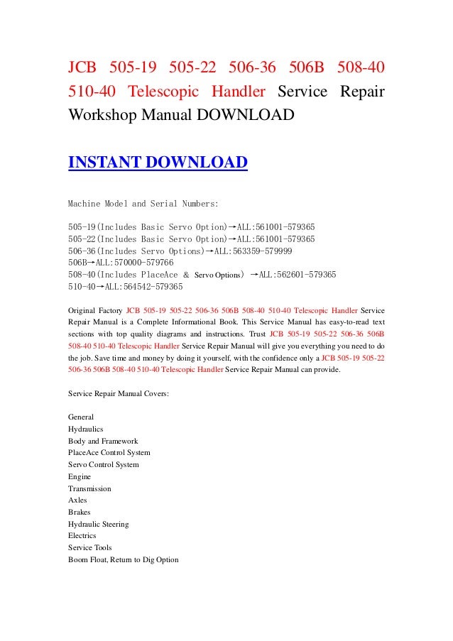 Jcb 505 19 505 22 506 36 506b 508 40 510 40 Telescopic Handler Servic