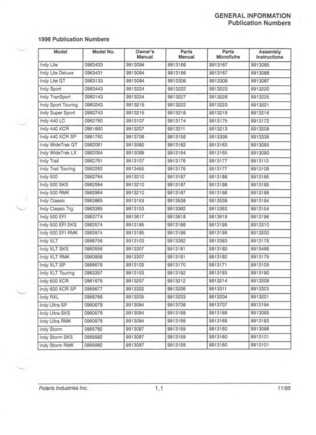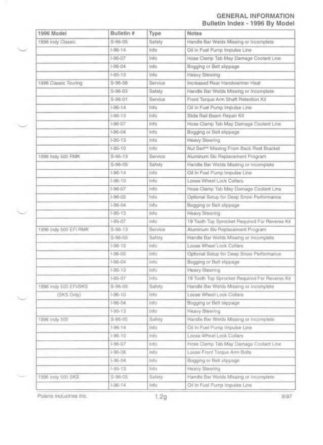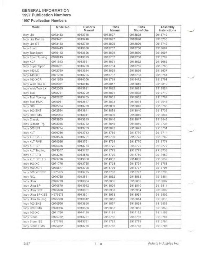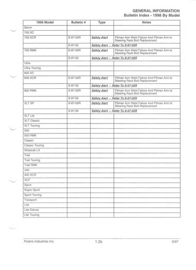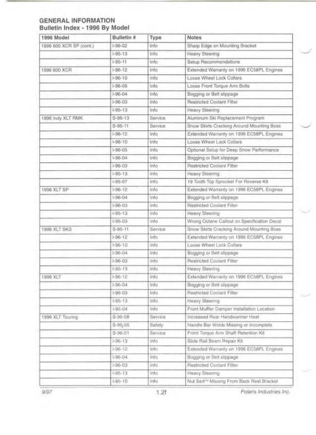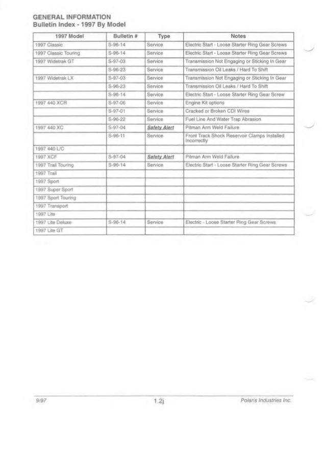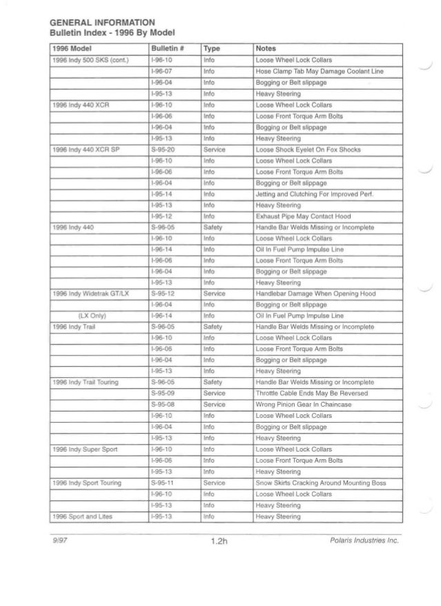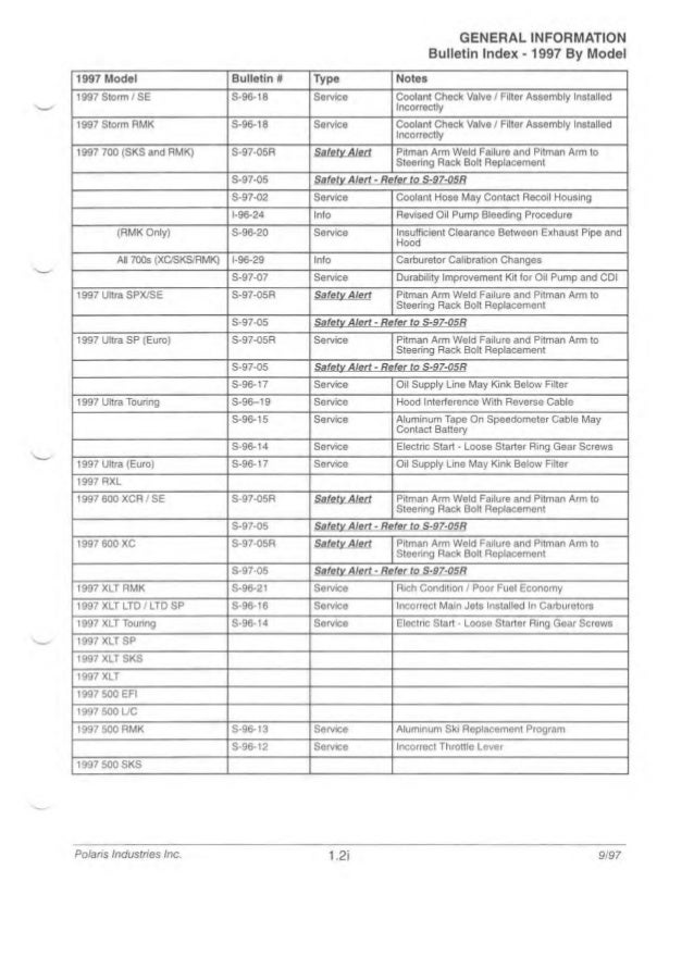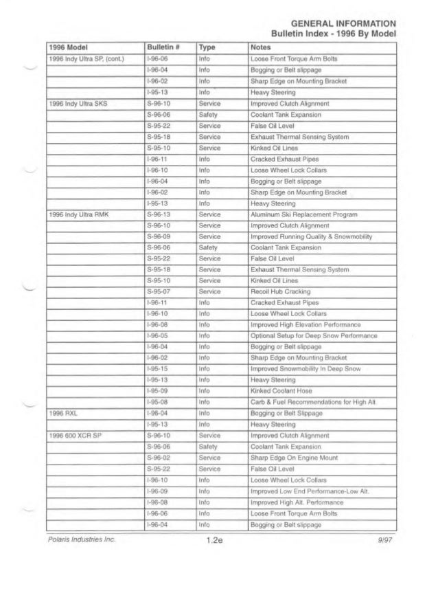 1997 Polaris Indy 600 Xc Snowmobile Service Repair Manual