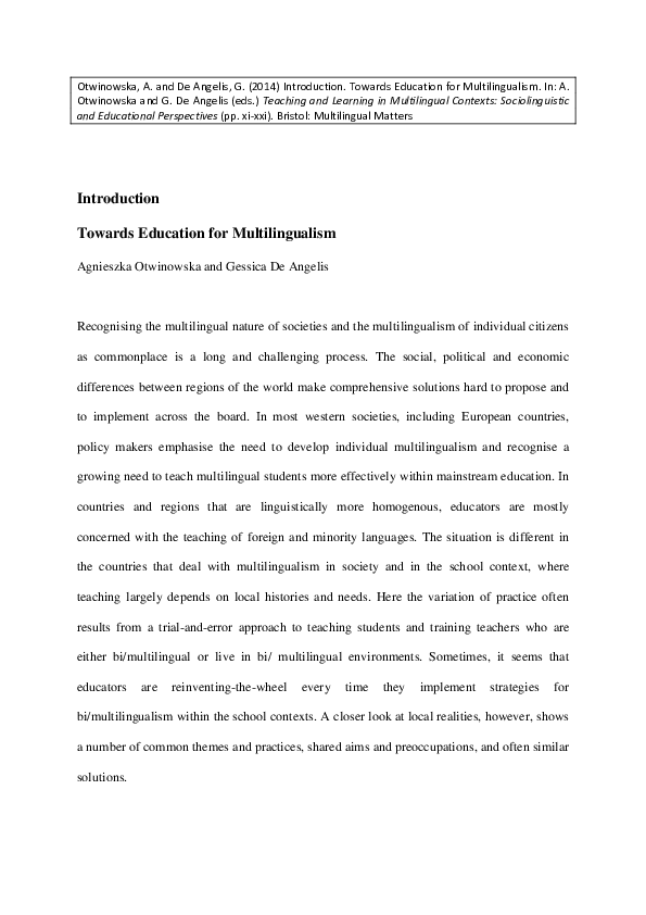 Pdf Modern Educational Domain Bilingualism And Multilingualism