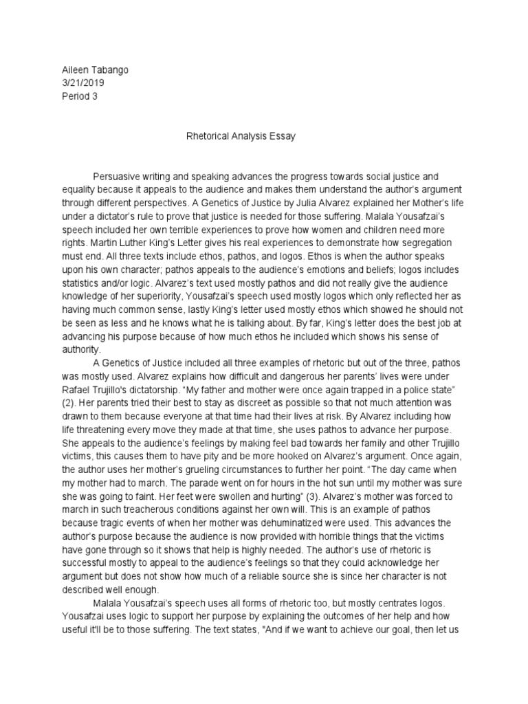 Rhetorical Analysis Essay Mawda Eleraj Malala Yousafzai