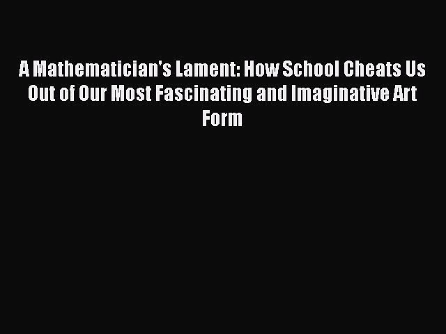 Ebook Epub Download A Mathematicians Lament How School Cheats Us