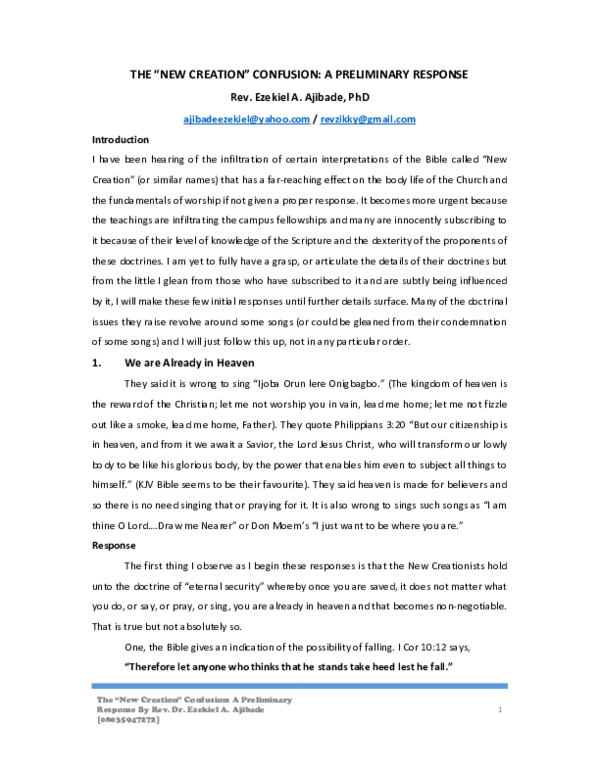 Pdf The New Creation Confusion A Preliminary Response