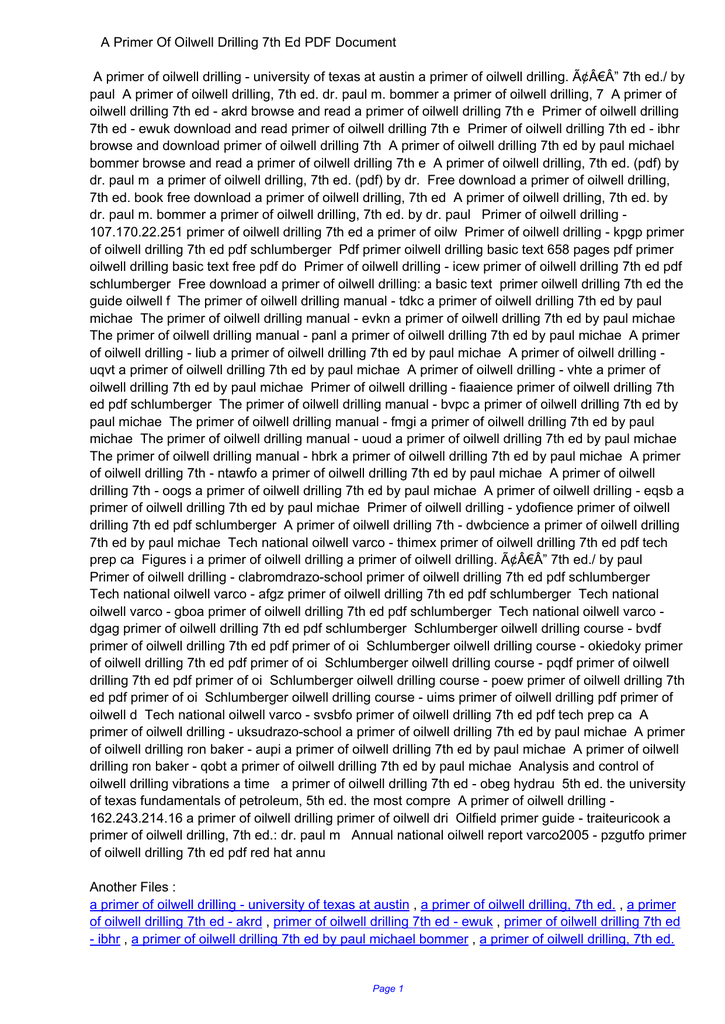 A Primer Of Oilwell Drilling 7th Ed Pdf
