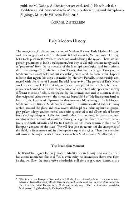 Pdf Early Modern History And The Mediterranean Short Review Of
