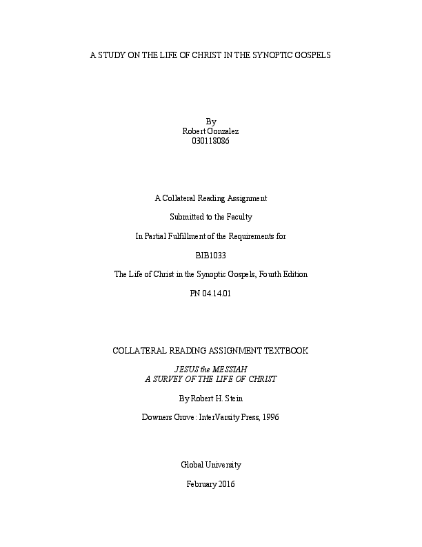 Pdf A Study On The Life Of Christ In The Synoptic Gospels