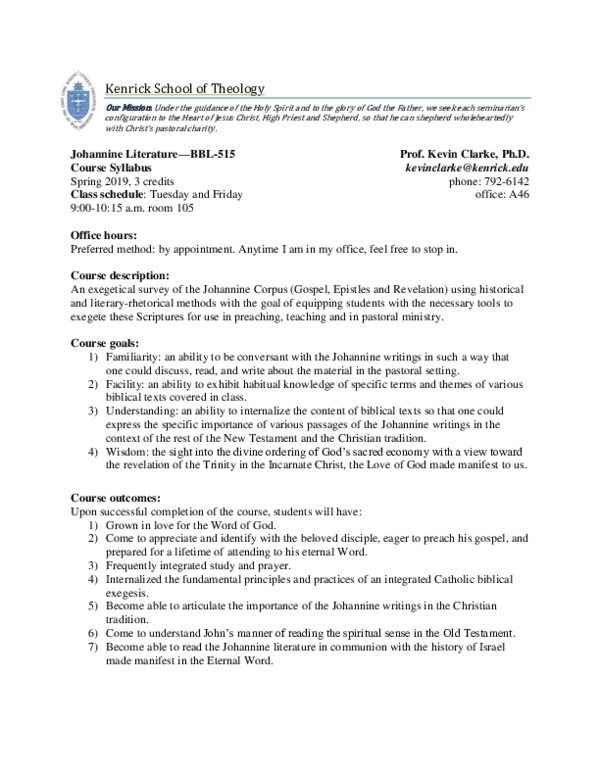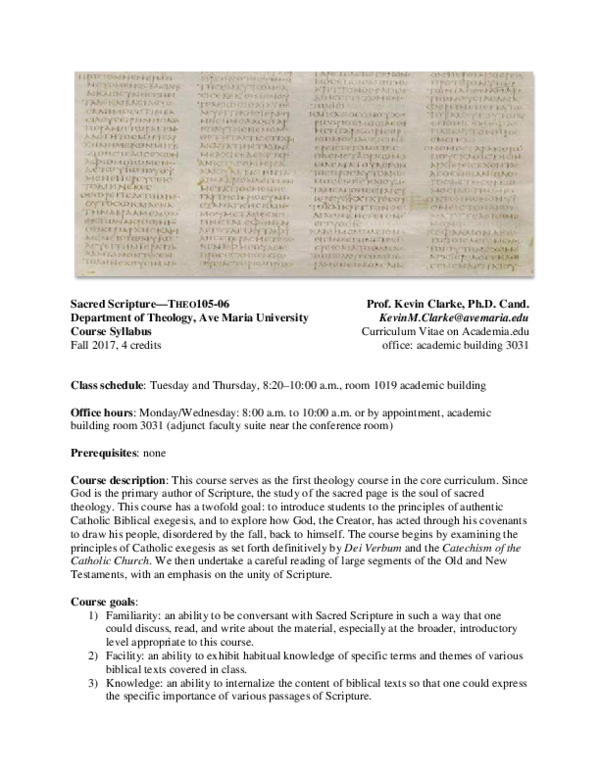 Pdf Sacred Scripture Theo 105 Course Syllabus Kevin Clarke