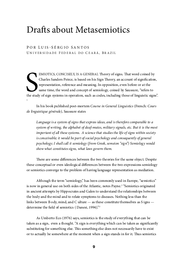 Pdf Drafts About Metasemiotics Luis Sergio Santos Academia Edu