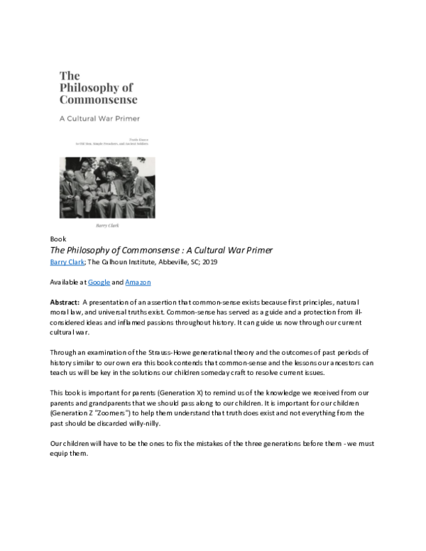 Pdf The Philosophy Of Commonsense Barry L Clark Academia Edu