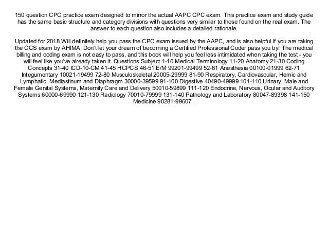 Cpc Practice Exam 2018 Includes 150 Practice Questions Answers