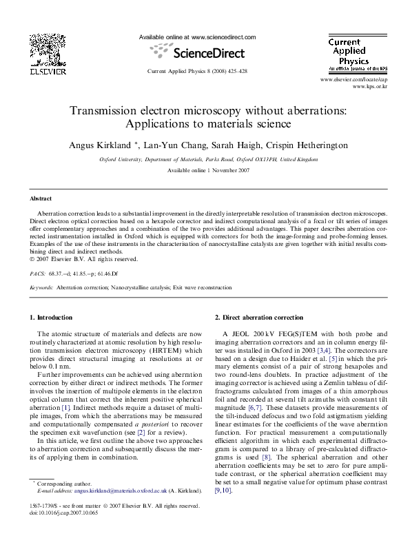 Pdf High Resolution Imaging And Spectroscopy Using Cs Corrected