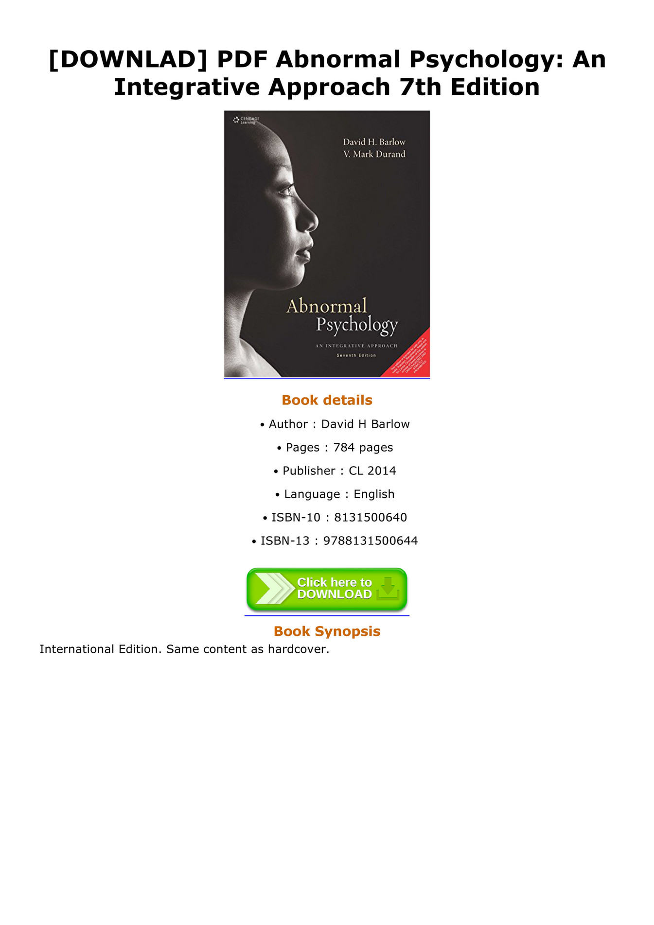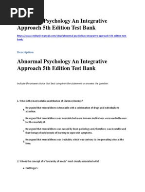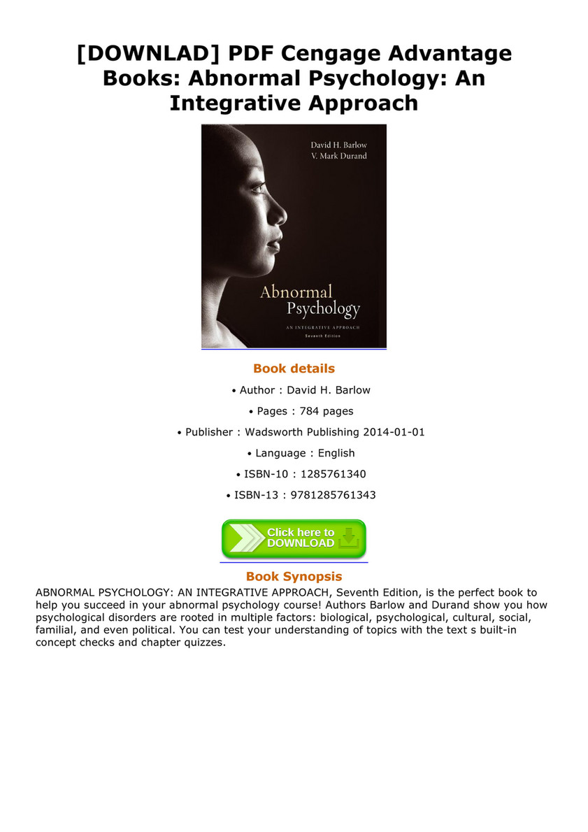 D O W N L O A D Pdf Abnormal Psychology An Integrative Approach