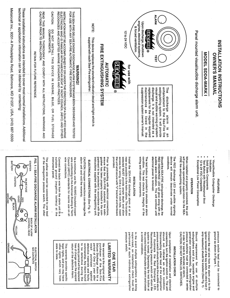 Sea Fire Sdda 1 Discharge Alarm Installation Manual Manualzz