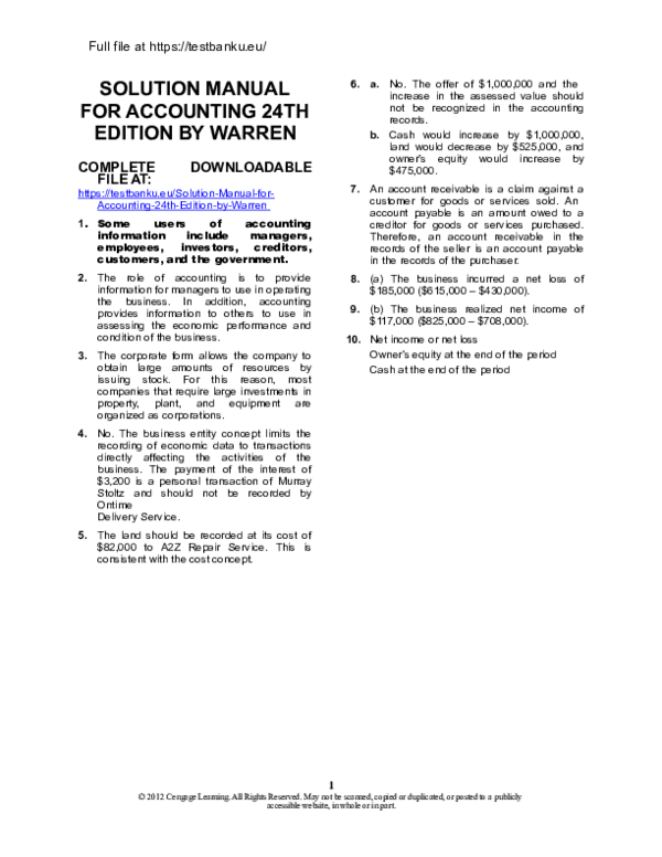 Test Bank For Accounting 25th Edition By Warren By Aiken0682 Issuu