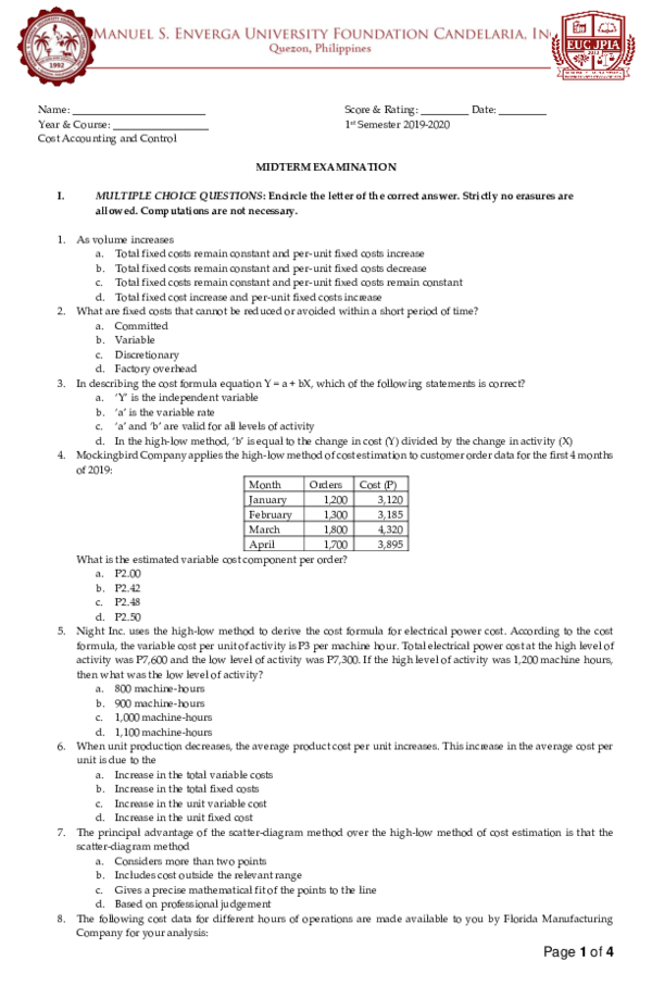 Doc Bacc3115 Cost Accounting Midterm Exam Practice Set Spring