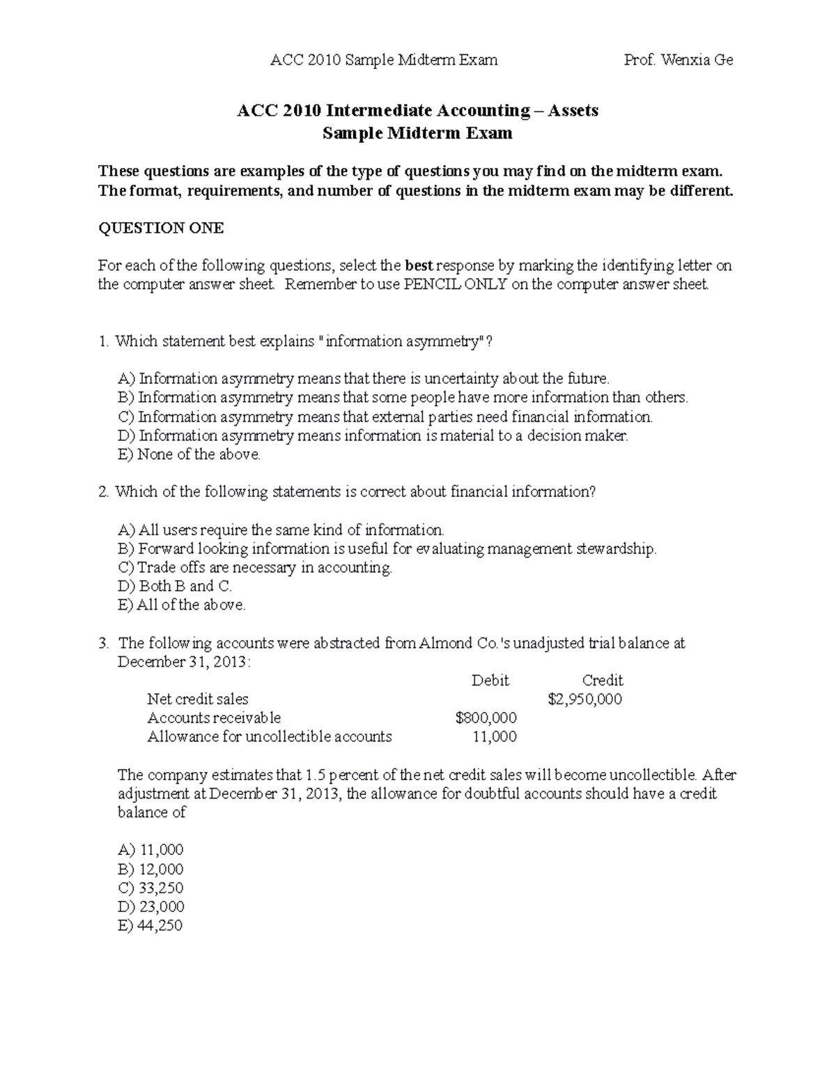 Acc 211 Midterm Exame College Paper Example Service