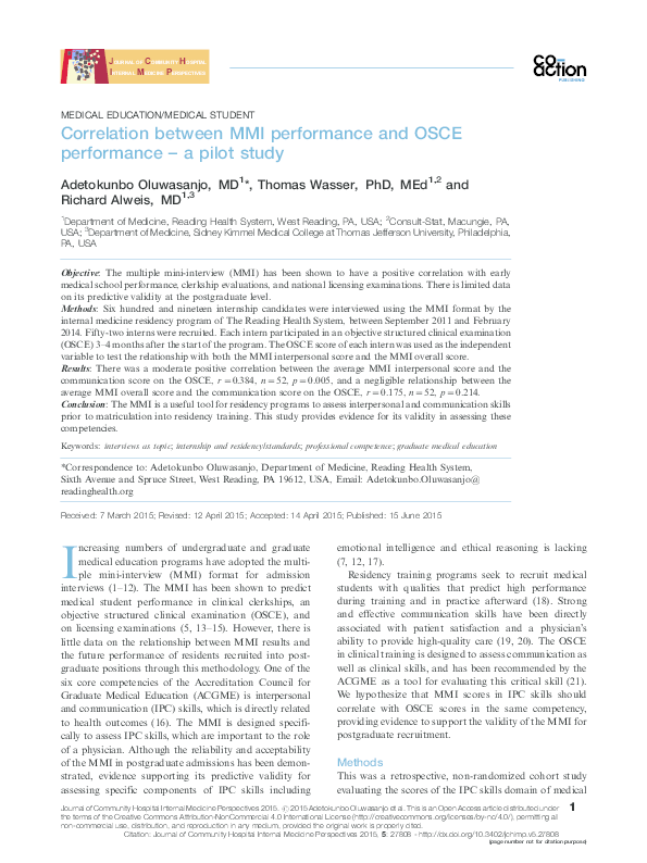 Pdf Predictive Validity Of The Multiple Mini Interview For