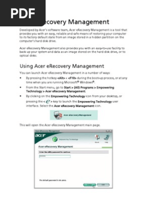 Acer Erecovery Management Backup Booting