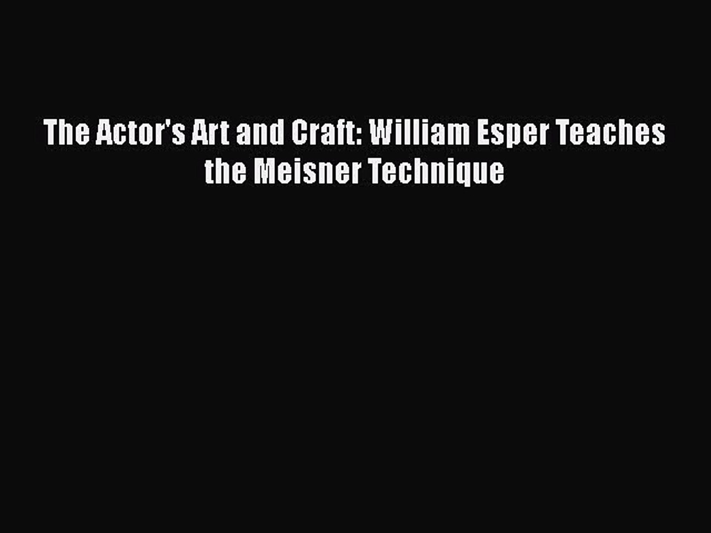 Download The Actors Art And Craft William Esper Teaches The