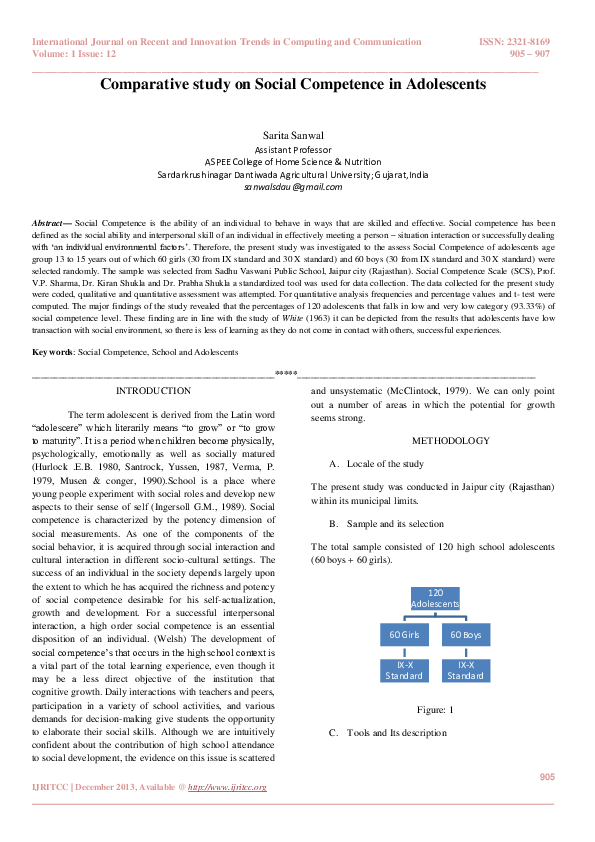 Pdf Comparative Study On Social Competence In Adolescents