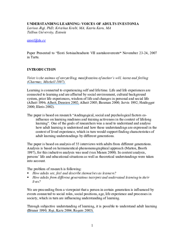 Adult learning in the social context. It can mean any form of learning adults engage in beyond traditional schooling encompassing basic literacy to personal fulfillment as a lifelong learner. Wilson 1993 argues that learning is an everyday event that is social in nature because it occurs with. It is inti mately related to that world and affected by it jarvis 1987 p.