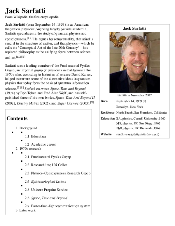 Pdf Jack Sarfatti Bio On Wikipedia Jack Sarfatti Academia Edu