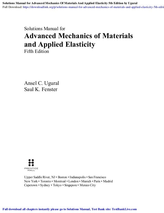 Advanced Mechanics Of Materials And Applied Elasticity Fifth