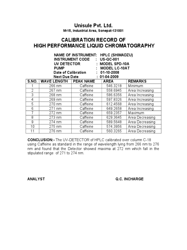 Waters Hplc Calibration Procedure Pdf