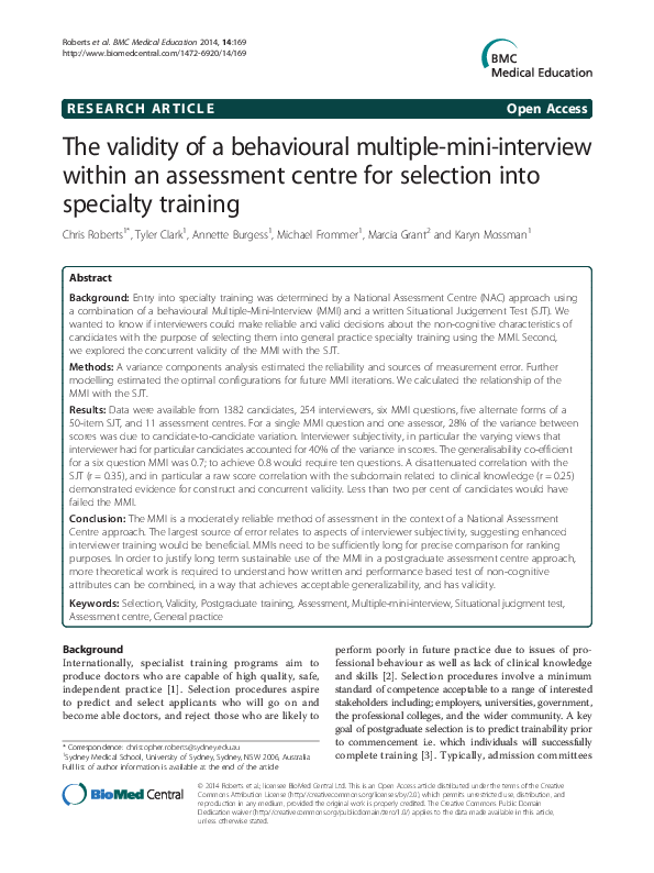 The Validity Of A Behavioural Multiple Mini Interview Within An